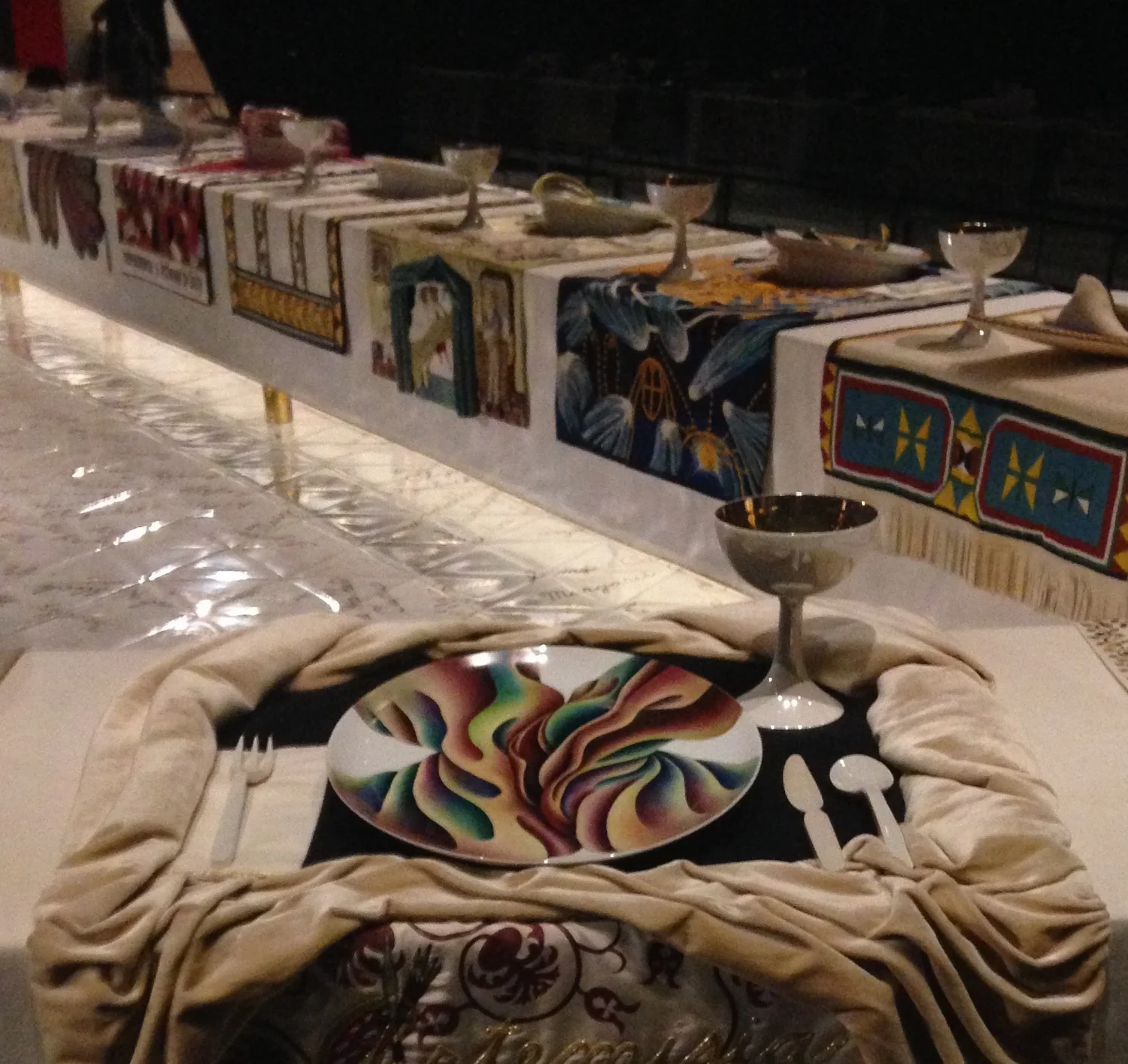 Judy Chicago The Dinner Party Meaning / Judy Chicago The Dinner Party Article Khan Academy / The historical importance, to women and western culture.. Sackler center for feminist art, my thesis argues that chicago's successful yet. Although much has changed radically in the past few decades, chicago's book is still relevant, and it most certainly suggests that there is and always has been, room for everyone at the table. Judy chicago, the dinner party, curating, art exhibition, feminist curating, feminist art, museum studies, contemporary art, women in art considering the dinner party's current installation at the elizabeth a. Whether an opponent or advocate of judy chicago's the dinner party, there is no denying the historical importance of the piece. Porcelain with rainbow and gold luster, 48 x 48 x 48 ft.